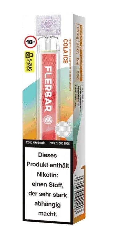 Die Flerbar M ist eine Einweg E-Zigarette, die für den einmaligen Gebrauch konzipiert ist. Sie bietet eine Alternative zu herkömmlichen E-Zigaretten und erfordert keine zusätzliche Montage, Wartung oder Ersetzen von Zubehörartikel. Die Flerbar M Einweg E-Zigarette ist mit einem fest verbauten Akku ausgestattet, der eine Kapazität von 550 mAh aufweist. Dieser kann weder ausgetauscht, noch aufgeladen werden. Mit dem Akku schafft die Flerbar bis zu 600 Züge. Bitte beachten Sie, dass die Zuganzahl je nach Zug- und Dampfverhalten variieren kann. Mit einem Tankvolumen von 2ml bietet die Flerbar M ausreichend Liquid, um über den Tag dampfen zu können. Genau wie der Akku, der nicht mit neuer Energie versorgt werden kann, wenn er leer ist, kann auch der Pod der Flerbar M nicht wieder befüllt werden. Ein positiver Aspekt der Flerbar M ist die breite Auswahl an Geschmacksrichtungen. Mit insgesamt 24 Sorten bietet die Flerbar M eine Vielzahl von Optionen, um den individuellen Vorlieben und Geschmäckern gerecht zu werden. Zu den verfügbaren Sorten gehören unter anderem der Karamell-Tabakgeschmack " Caramel Tobacco", der Geschmack "Orange", der Geschmack "Blueberry" und die Mischung aus Frucht und Kühle mit "Watermelon Ice". Auch einige ausgefallene Sorten können Sie erleben. Sollten Sie sich zum Beispiel für die Sorte "Chewy Watermelon" entscheiden, erhalten Sie einen Geschmack, welcher an Wassermelonen-Kaugummis erinnern soll. Von den 24 Sorten können Sie alle mit einer Nikotinstärke von 20 mg/ml erwerben, und davon sind 10 Sorten auch in der Stärke 0 mg/ml verfügbar.
